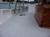 Das alte Lärchendeck, das leider nicht mehr wasserdicht war, wurde mit Glasfasermatte und Epoxidharz überzogen.