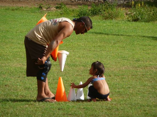 Fußball-Trainer mit Tochter bei der Arbeit