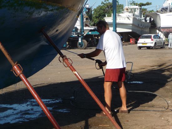 Reinigen des Unterwasserschiffes mit Hochdruck
